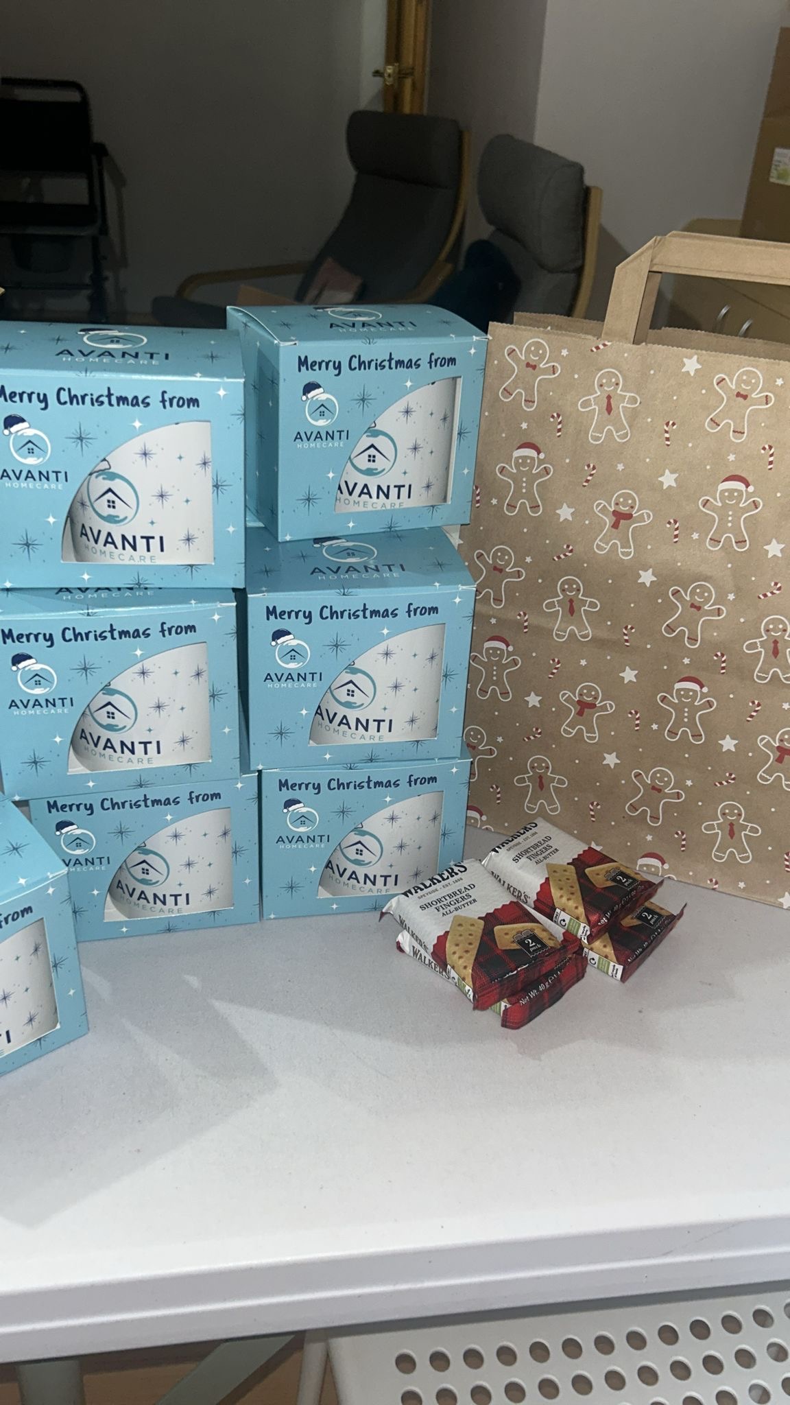We have begun rolling out our Christmas gifts to clients and we hope they bring a little extra comfort and cheer. Each client has received a personalised Avanti Homecare mug, festive shortbread, Christmas tea, and a handwritten card. The cards were lovingly handmade by our Chief Executive Officer Lis’s mum, adding a truly personal touch that reflects the heart behind everything we do.